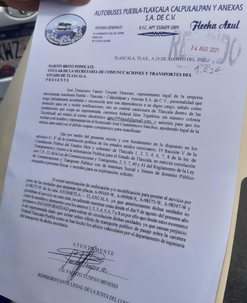 Y es que señalaron que en las últimas semanas al menos 15 unidades que pertenecen a la línea Ayometla- Tlaxcala han empezado a trabajar sin que tengan certeza de su legalidad, lo cual supone competencia desleal por parte de los transportistas de la ruta Ayometla-Tlaxcala.