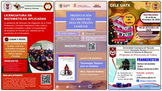 Cartelera de la Universidad Autónoma de Tlaxcala al jueves 4 de diciembre de 2025