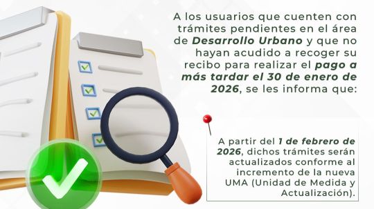 Desarrollo Urbano informa actualización de trámites conforme a la nueva UMA