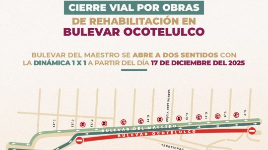 Habrá cierre total del bulevar Ocotelulco en la capital a partir del 17 de diciembre por obras de reencarpetamiento