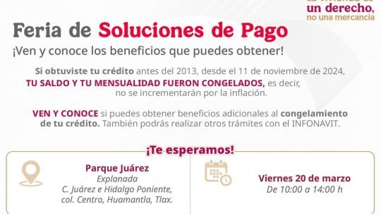 Infonavit acercará servicios a la ciudadanía con feria de soluciones de pago en Huamantla