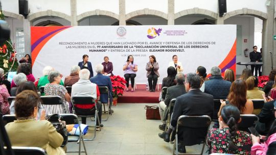 Las diputadas María Ana Bertha Mastranzo Corona y Laura Yamili Flores Lozano acompañaron a la Asociación Internacional de Consejeras y Consultoras por los Derechos de las Mujeres en la entrega de la presea "Eleanor Roosevelt", un reconocimiento que distingue la trayectoria y méritos de mujeres que han impulsado la defensa y el avance de los Derechos de las Mujeres, en el marco del septuagésimo séptimo aniversario de la Declaración Universal de los Derechos Humanos.
