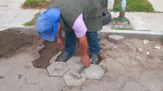 Asimismo, se efectúan trabajos de colocación de adoquines en calle San Luis, como parte del seguimiento a las intervenciones realizadas previamente en la red de agua potable, asegurando con ello la correcta rehabilitación de la vialidad.