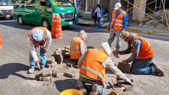 Como parte de los trabajos de mantenimiento permanente, brigadas municipales realizaron la renivelación de hundimientos en puntos del centro histórico, entre ellos la Calle Zitlalpopócatl y la Avenida Juárez.