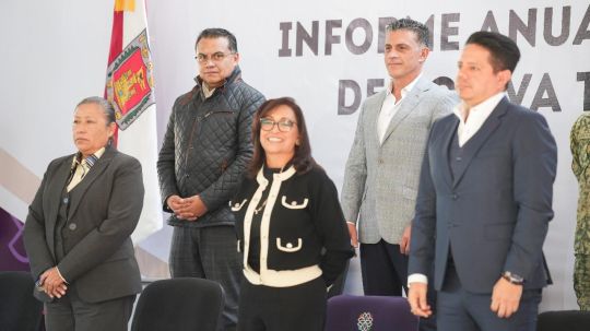 Durante este informe, la gobernadora Lorena Cuéllar Cisneros hizo un reconocimiento al trabajo conjunto de las instancias estatales y federales que han llevado a Tlaxcala a ser el estado más seguro del país.