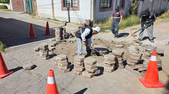 Además, se efectuaron labores de renivelación de adoquín en las calles Nogales y Membrillo, en la comunidad de La Trinidad Tepehitec, para mejorar la movilidad y seguridad vial.