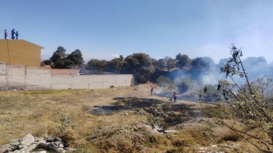 La Dirección de Seguridad Pública, Tránsito y Protección Civil de Huamantla atendió de manera inmediata un reporte de incendio en un predio baldío, ubicado en la Prolongación de Hidalgo, a un costado de la barranca, en el Pueblo de Jesús.