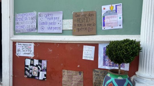 Al concluir el recorrido, algunas asistentes colocaron cartulinas y mensajes en el exterior del Palacio Municipal como parte de las expresiones propias de esta conmemoración.