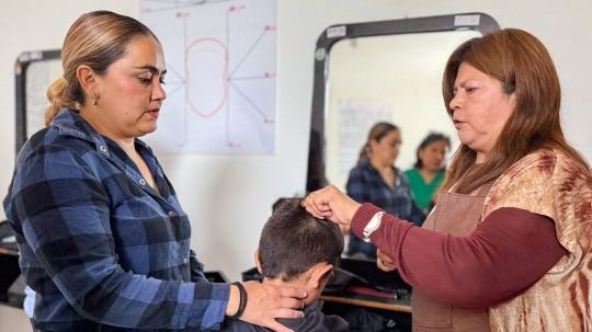 De manera paralela, otro grupo de mujeres cursa el taller de cortes de cabello nivel básico, donde adquieren conocimientos sobre técnicas modernas tanto para hombres como para mujeres, ampliando así sus oportunidades en el ámbito de los servicios personales.