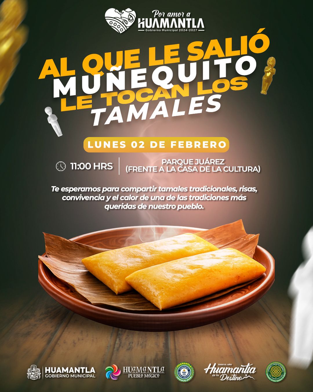 La cita es este lunes 2 de febrero a las 11:00 horas, en el Parque Juárez, frente a la Casa de la Cultura, donde familias huamantlecas podrán reunirse para compartir tamales tradicionales, convivencia y un ambiente de alegría que fortalece el tejido social.