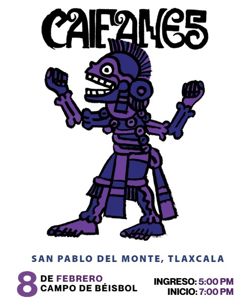 El 8 de febrero es la fecha cuando Caifanes se presentará en San Pablo del Monte, por lo que el Ayuntamiento informó que se llevará a cabo en el Campo de Beisbol, ubicado en la comunidad de San Bartolomé y que hay boletos disponibles para la población en general.