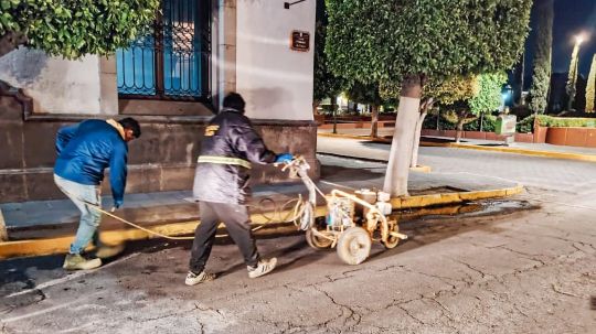 Brigadas de "Más territorio y menos escritorio" madrugaron este jueves para realizar trabajos de pintado de señalización a partir de las 4:00 de la mañana en calles de la capital, como parte de las acciones impulsadas por el gobierno de Alfonso Sánchez García para mejorar la movilidad urbana y la seguridad vial.