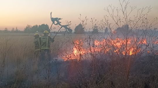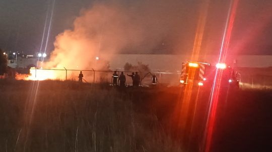 Gracias a la rápida coordinación y oportuna respuesta de los cuerpos de emergencia, elementos de Protección Civil y de la Dirección de Seguridad Pública y Tránsito de Huamantla atendieron de manera inmediata un incendio de pastizal registrado en el camino de terracería hacia Nuevo San Juan, a la altura del corredor industrial Xicohténcatl II, evitando que el fuego representara un riesgo mayor para la población y la zona industrial.