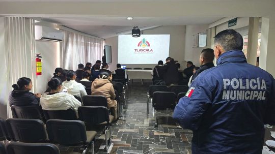 Elementos de la Dirección de Seguridad, Protección Ciudadana y Movilidad del Ayuntamiento de Tlaxcala reforzaron la estrategia de proximidad social al impartir una plática de autocuidado dirigida a estudiantes de la Escuela de Enfermería Florence Nightingale, ubicada en la Calle 2 de La Loma Xicohténcatl, como parte de las acciones preventivas y formativas que impulsa la administración municipal.