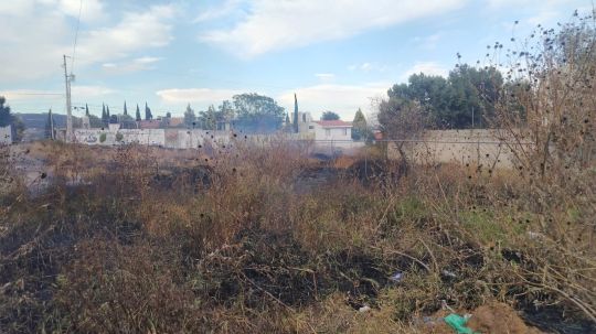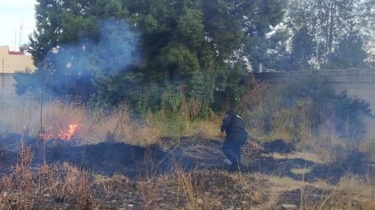 Elementos de la Dirección de Seguridad Pública, Protección Ciudadana y Movilidad del municipio de Tlaxcala sofocaron un incendio de pastizales en un terreno baldío, cerca del CBTIS 3.