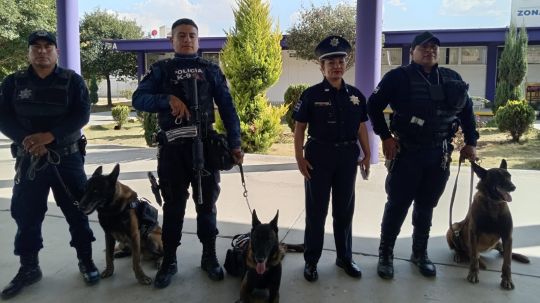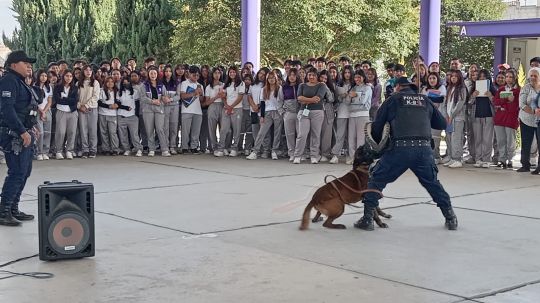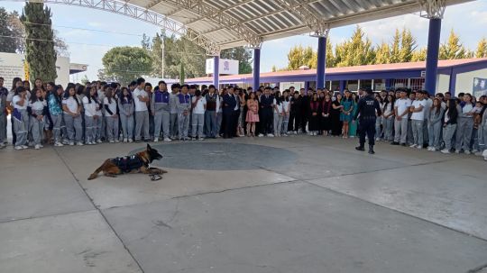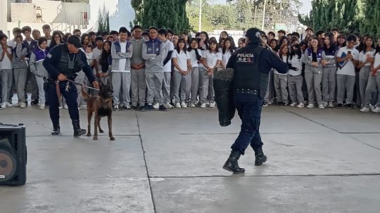 La Dirección de Seguridad Pública, Tránsito y Protección Civil de Huamantla llevó a cabo una demostración del agrupamiento K-9 en el plantel COBAT 02 turno vespertino, como parte de las acciones de proximidad social y prevención del delito que impulsa el Gobierno Municipal.