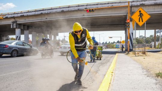 En una acción más de "Menos escritorio y más territorio", el presidente municipal Alfonso Sánchez García supervisó los trabajos de colocación de pintura en guarniciones sobre el bulevar de la carretera Puebla–Tlaxcala, a la altura del Centro Cultural Universitario.