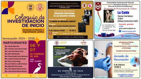 Cartelera de la Universidad Autónoma de Tlaxcala al viernes 6 de febrero de 2026
