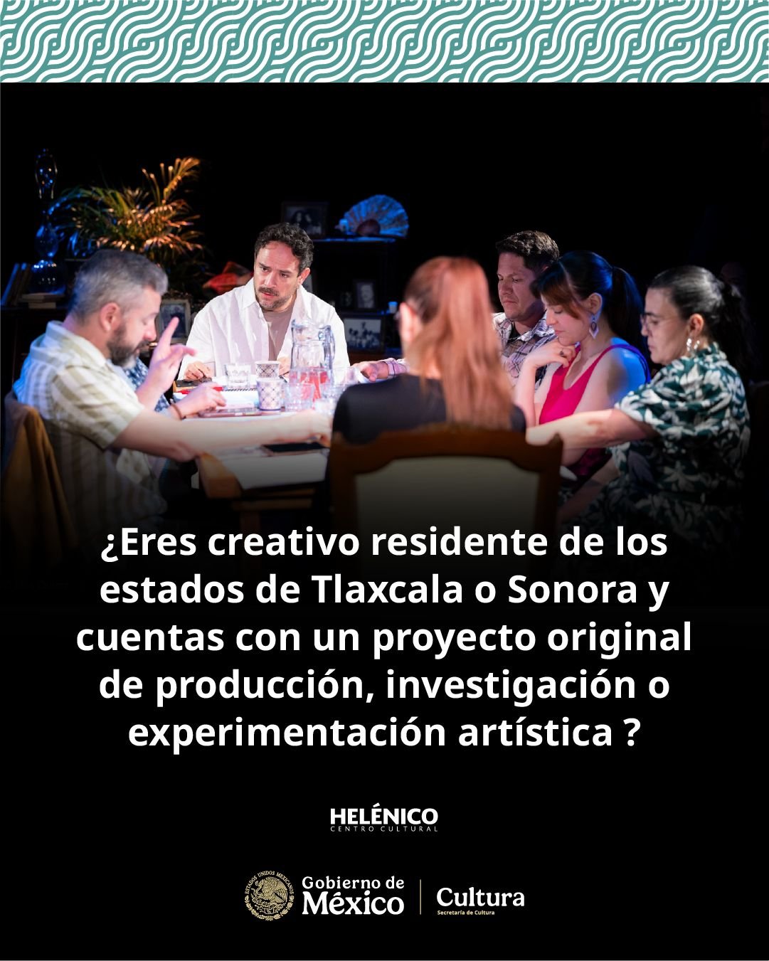 La Secretaría de Cultura del Gobierno de México, a través del Centro Cultural Helénico, en coordinación con la Secretaría de Cultura de Tlaxcala, lanzó la convocatoria ‘Residencias Artísticas Helénico 2026’, en su modalidad Comunidades creativas Tlaxcala, dirigida a impulsar proyectos escénicos con impacto social y comunitario.