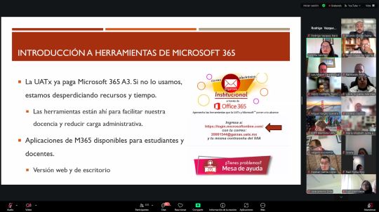 En formato virtual, la ponente explicó las funcionalidades de Microsoft 365 a través de aplicaciones como Word, PowerPoint y Excel, resaltando su integración con Copilot, recurso estratégico incorporado al Sistema Integral de Información Administrativa (SIIA).