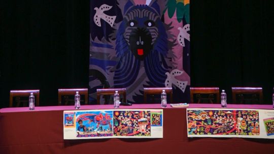 El mural se realiza en la comunidad de Ocotlán sobre cuatro bastidores de madera de 2.40 por 1.40 metros, montados en una estructura de acero con una altura aproximada de dos metros. La obra fue concebida como itinerante, con el objetivo de exhibirse en distintos municipios y posteriormente se buscará que llegué a la Ciudad de México.