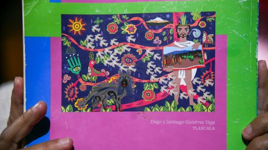 Entre los elementos representados destacan las alfombras de Huamantla, La Malinche, Xicohténcatl el Joven y la salida de las 400 familias, íconos que sintetizan la memoria histórica y la identidad del estado. A partir de la portada del libro de cuarto grado surge ahora una propuesta muralística que amplía ese discurso visual y lo lleva al espacio público.