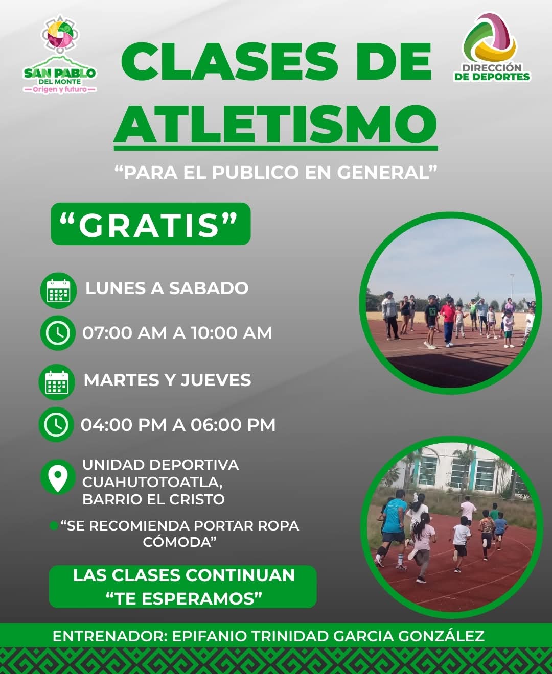 El Ayuntamiento de San Pablo del Monte, a través de su Dirección de Deportes, mantiene abiertas las inscripciones para las clases gratuitas de atletismo dirigidas al público en general.