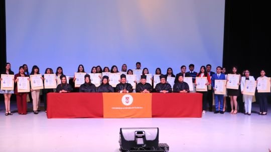 En la Universidad Autónoma de Tlaxcala (UATx) se conjugan saberes y praxis para potenciar el impacto de las profesiones en la sociedad mediante una formación orientada al desarrollo de capacidades y al crecimiento personal con responsabilidad social, afirmó el Rector, Doctor Serafín Ortiz Ortiz, al presidir la ceremonia de entrega de 319 títulos profesionales de licenciatura, especialidad, maestría y doctorado, correspondientes a los distintos programas educativos que se imparten en la Institución.