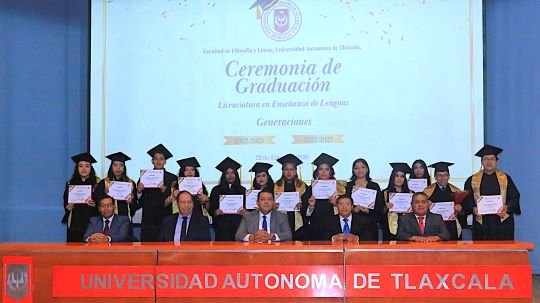 Los profesionales en la Enseñanza de Lenguas favorecen la comunicación, el entendimiento entre personas y la vinculación entre contextos diversos, lo cual quedó de manifiesto en la ceremonia de graduación de 40 estudiantes, generaciones 2021-2025 y 2022-2025, de la Licenciatura en Enseñanza de Lenguas de la Facultad de Filosofía y Letras de la Universidad Autónoma de Tlaxcala (FFyL-UATx).