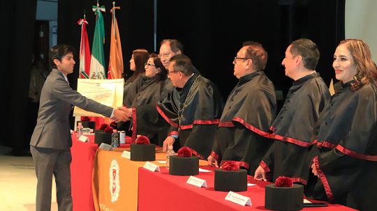 Por su parte, el Maestro Alejandro Palma Suárez, Secretario Académico, mencionó que este título acredita su preparación académica y consolida su autorrealización tanto individual como social. Reiteró que este acto es la confirmación de que han logrado transformar el conocimiento en proyecto de vida, y el ejercicio de su profesión es un compromiso y responsabilidad colectiva, porque el país y el mundo demandan contar con personal especializado que brinde soluciones a los problemas comunes con ética, compromiso y sensibilidad humana.