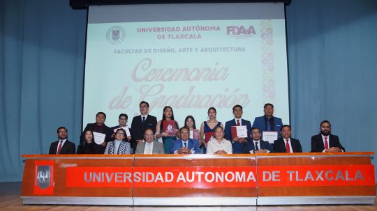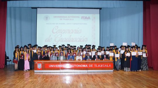 Desde la Universidad Autónoma de Tlaxcala (UATx) respondemos a las necesidades sociales, porque además de formar a nuestros estudiantes también trazamos rutas de vida, conscientes de que la profesión que eligen será parte de ellos para siempre, aseguró el Rector, Doctor Serafín Ortiz Ortiz, al presidir la ceremonia de graduación de 128 profesionistas de la Facultad de Diseño, Arte y Arquitectura (FDAyA), celebrada en el Teatro Universitario.