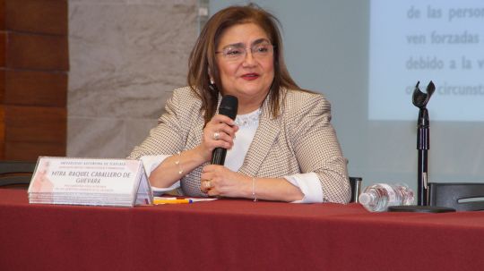 La Doctora Caballero de Guevara explicó que la migración va más allá de un fenómeno social y lo vislumbra como una experiencia profundamente humana que es marcada por causas estructurales como la violencia, la pobreza y efectos del cambio climático, así como de los múltiples desafíos y riesgos que enfrentan las personas a lo largo del ciclo migratorio.