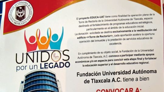 La Universidad Autónoma de Tlaxcala (UATx) y su Fundación hicieron un llamado unificado a la sociedad tlaxcalteca para unirse a un esfuerzo final que permita concluir la vestibulación del nuevo edificio de rectoría, un proyecto arquitectónico de vanguardia concebido como un referente cultural y educativo.