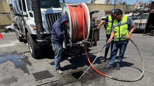 Las brigadas limpian rejillas en la zona del mercado “Emilio Sánchez Piedras” y con el apoyo del camión Vactor se desazolvan alcantarillas en la Av. Juárez