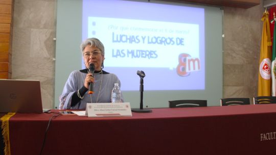 Es necesario construir una sociedad más justa, basada en la igualdad de derechos entre mujeres y hombres, y la denuncia de la violencia, que está presente en distintos ámbitos y sectores, se convierte en un ejercicio fundamental de empoderamiento, aseveró la Maestra Alma Carina Cuevas Fernández, catedrática de la Facultad de Derecho, Ciencias Políticas y Criminología de la Universidad Autónoma de Tlaxcala (FDCPyC-UATx), quien dictó la conferencia ¿Por qué conmemorar el día 8 de marzo?, como parte de las actividades conmemorativas por el Día Internacional de la Mujer.