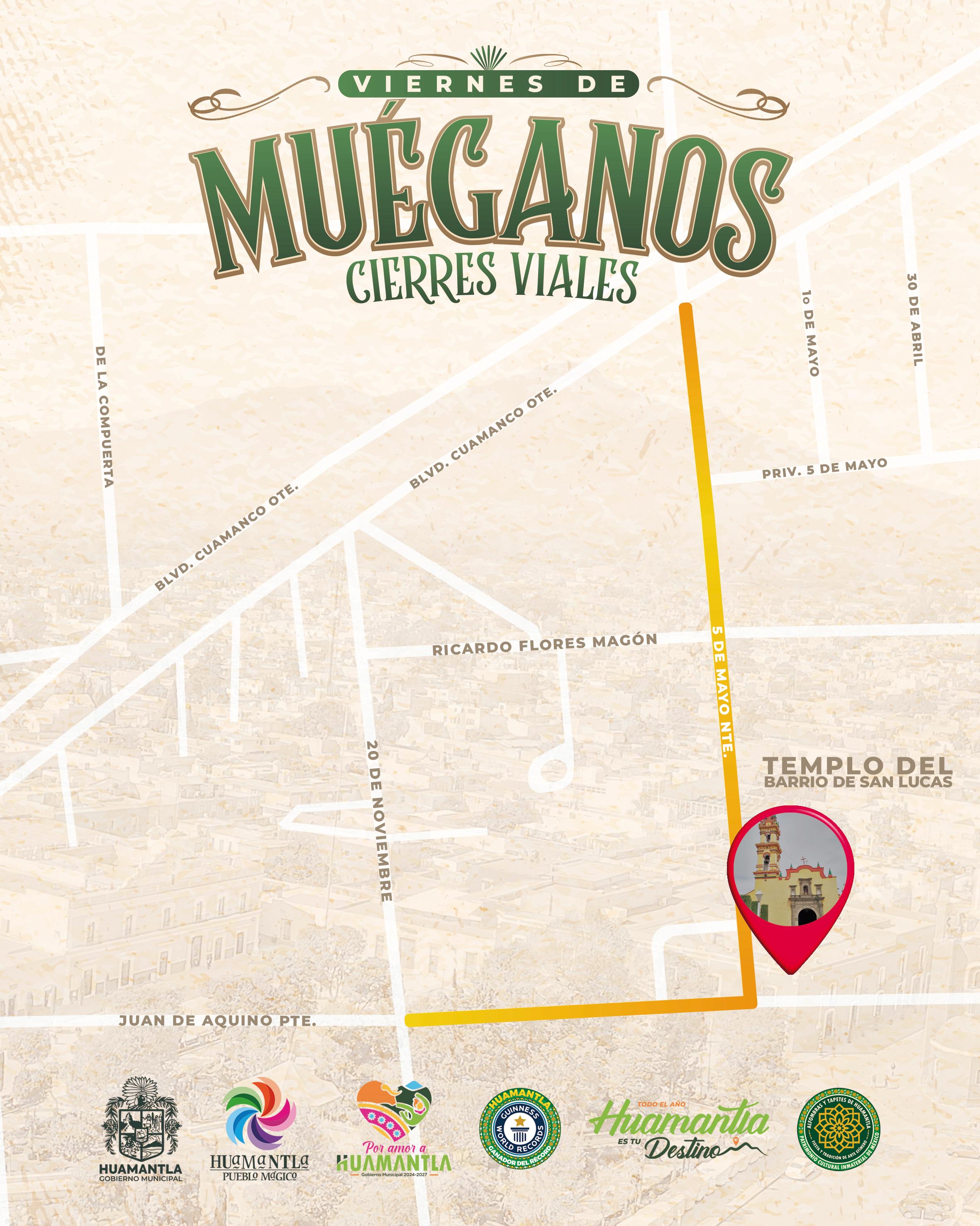 Con motivo de esta actividad, se informa que habrá cierres viales en Calle 5 de Mayo, desde bulevar Cuamanco hasta calle Juan de Aquino y en Calle Juan de Aquino, desde 5 de Mayo hasta 20 de Noviembre.