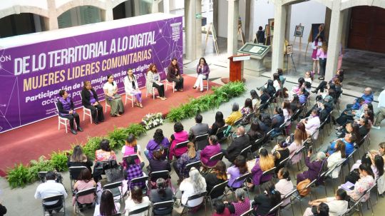 En el Patio Vitral del Congreso del Estado de Tlaxcala se llevó a cabo el espacio de reflexión y aprendizaje "De lo territorial a lo digital: Mujeres líderes comunitarias", con la participación de representantes de los municipios que formaron parte del proyecto "Participación política de las mujeres en la era digital: acciones para impulsar su liderazgo".