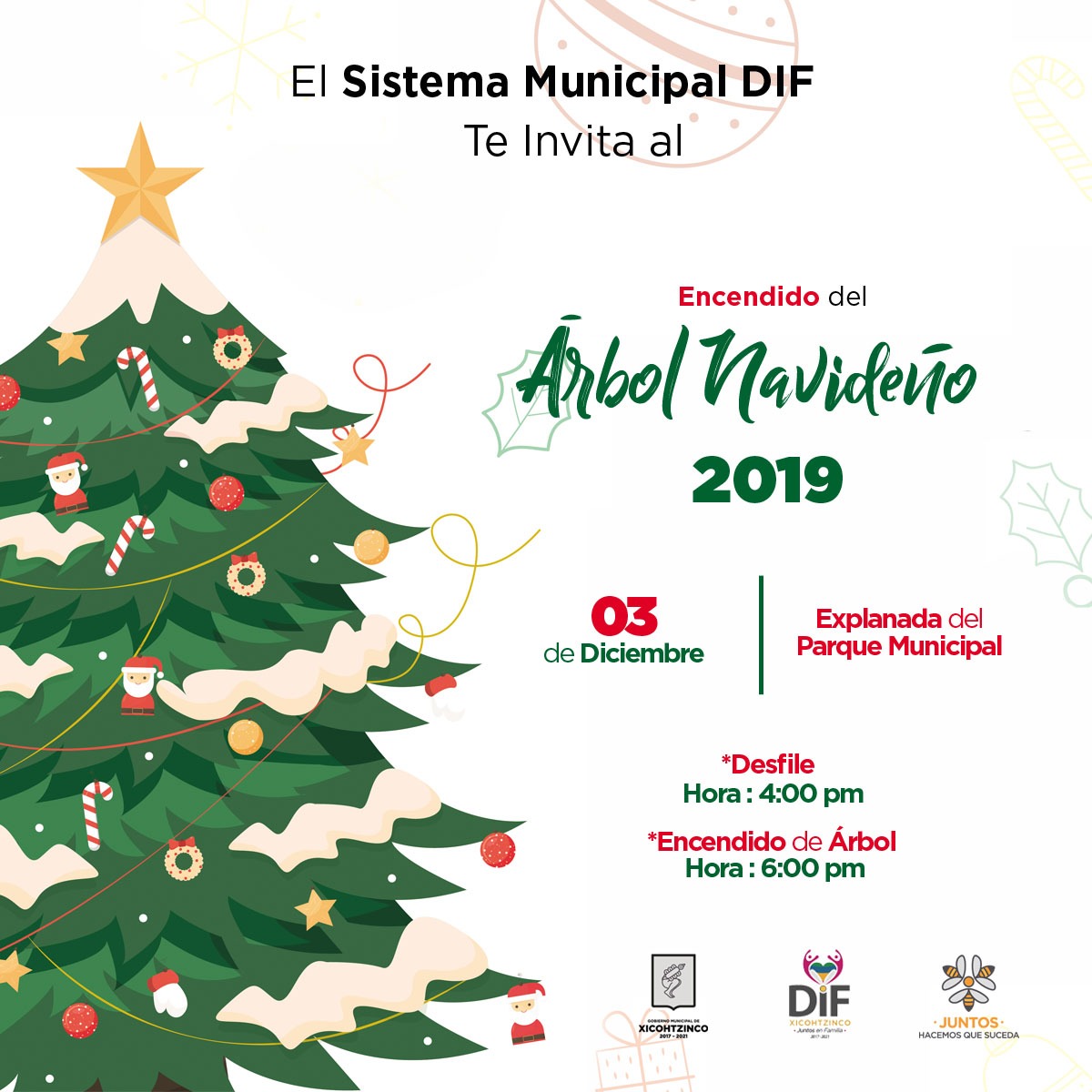 03 de Diciembre, desfile a las 4:00 pm y encendido del árbol a las 6:00 pm