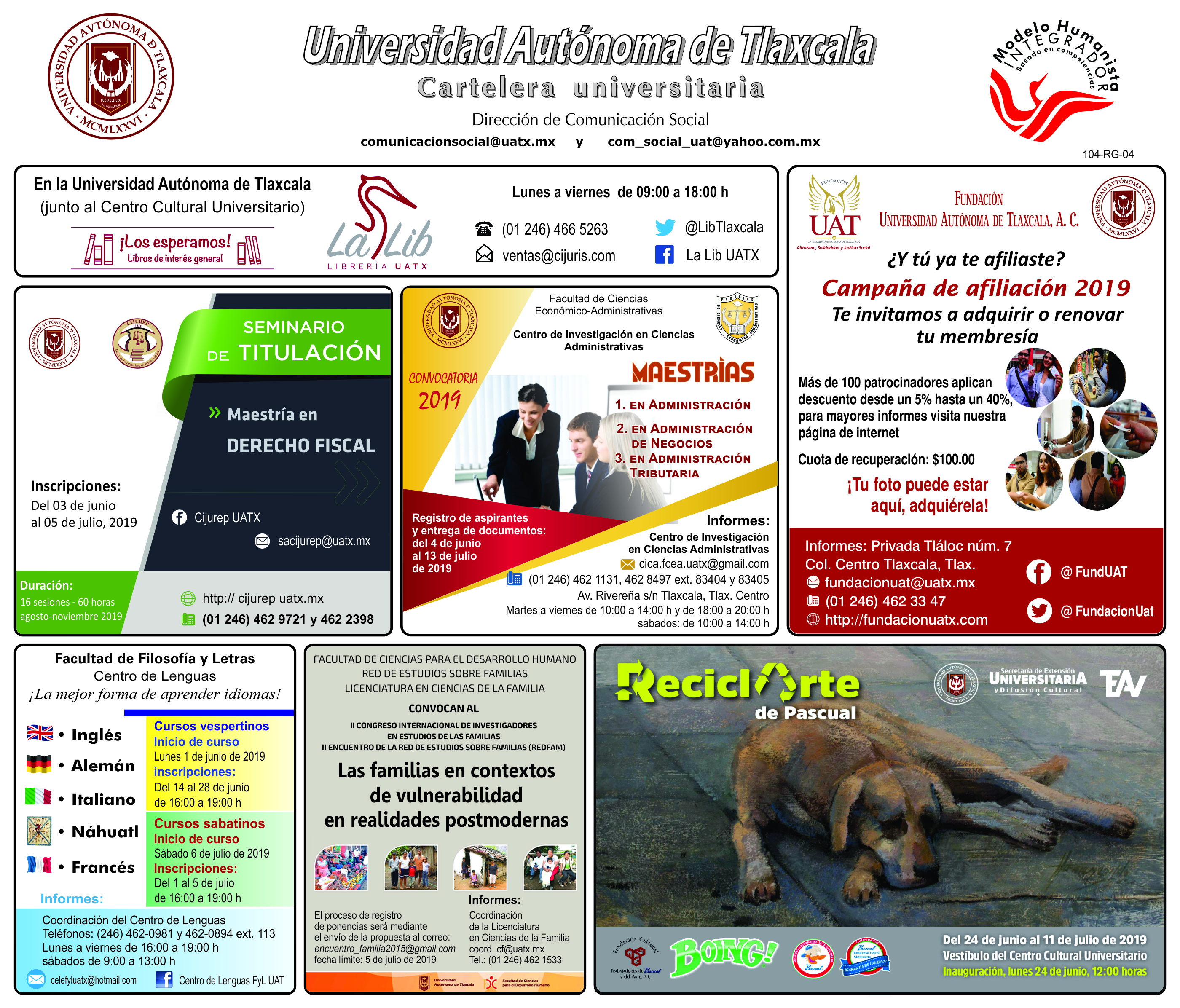 Cartelera UATx correspondiente al lunes 24 de junio de 2019