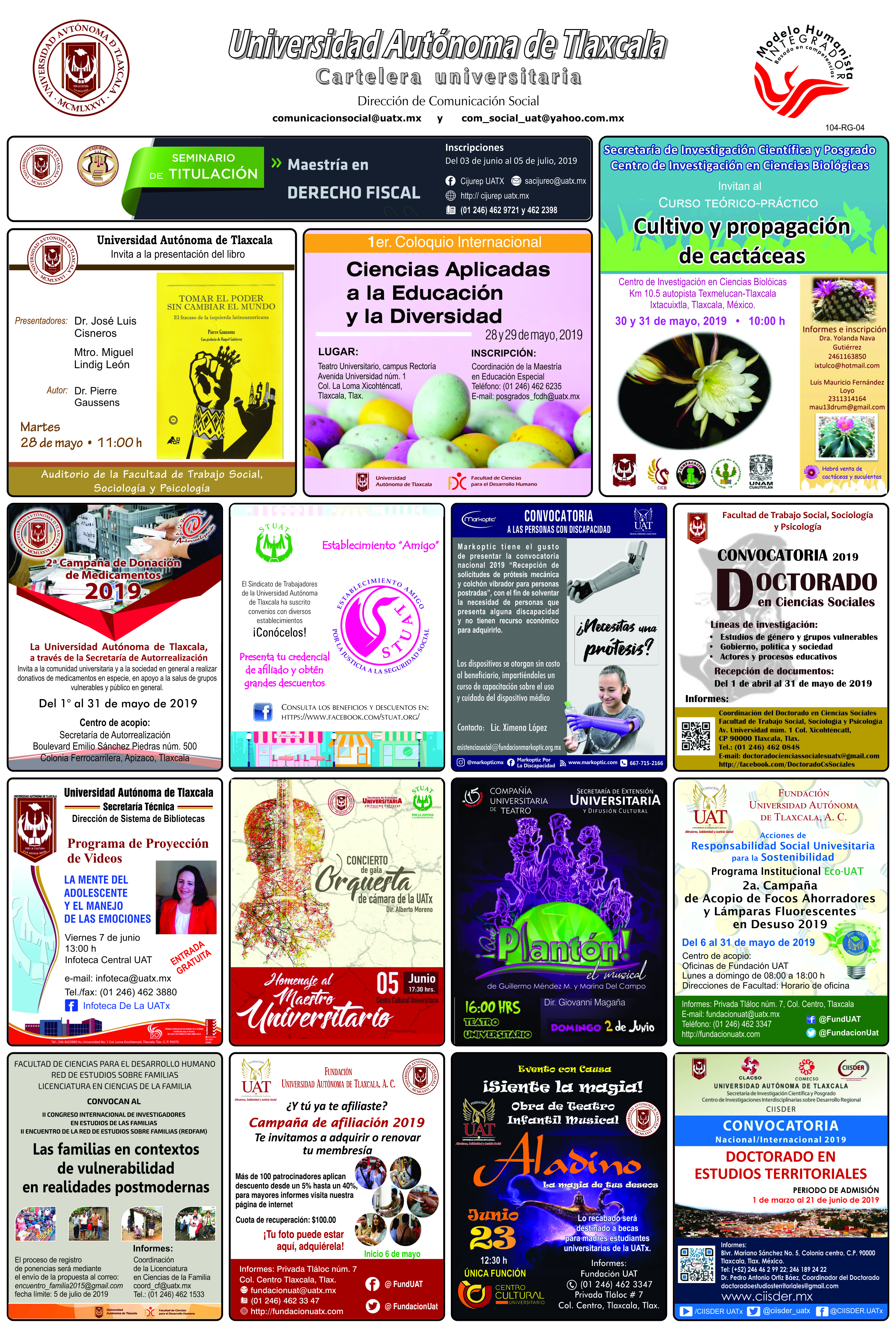 Cartelera UATx correspondiente al lunes 27 de mayo de 2019