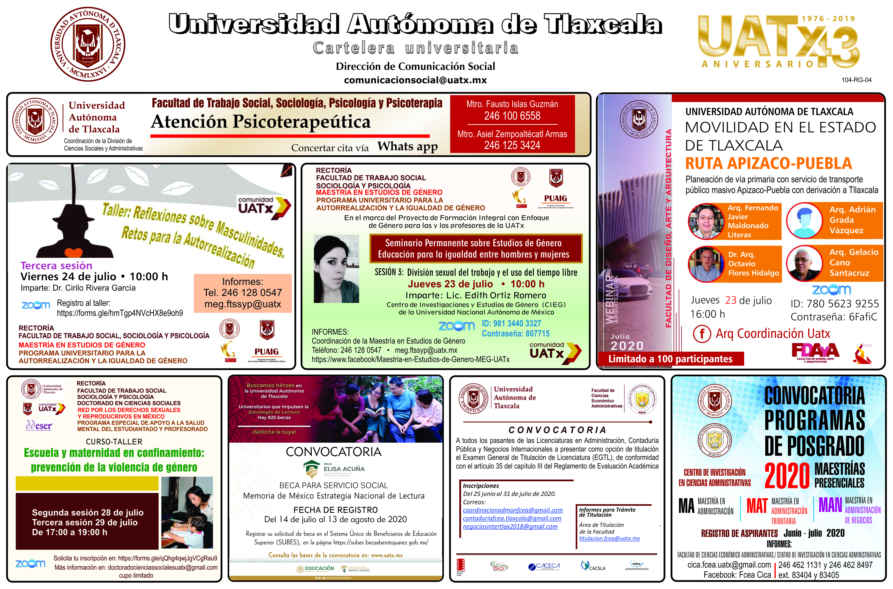 Conoce las actividades que desarrolla la UATx en distintos ámbitos con la Cartelera jueves 23 de julio de 2020
