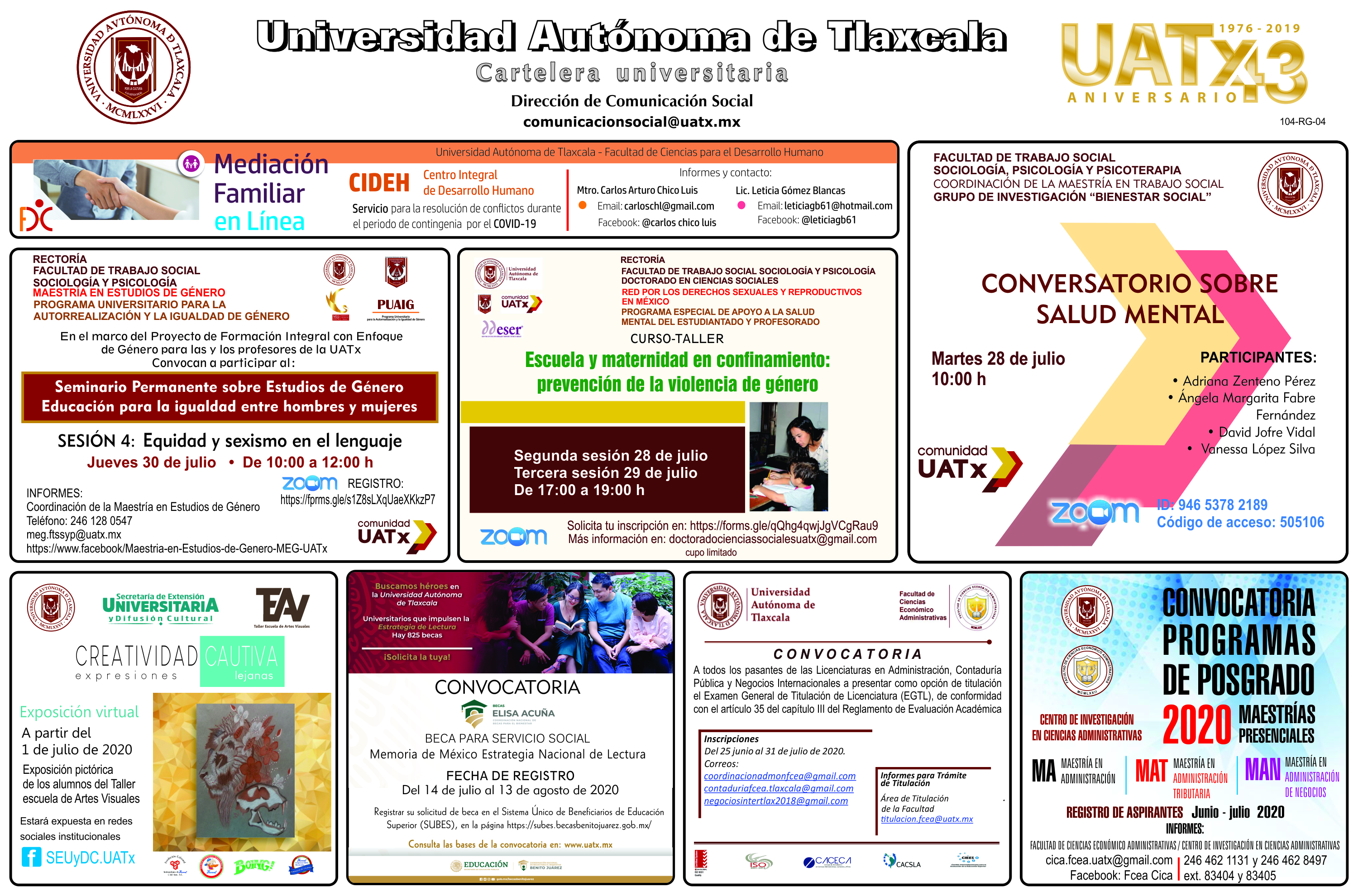 Conoce las actividades que desarrolla la UATx en distintos ámbitos con la Cartelera lunes 27 de julio de 2020