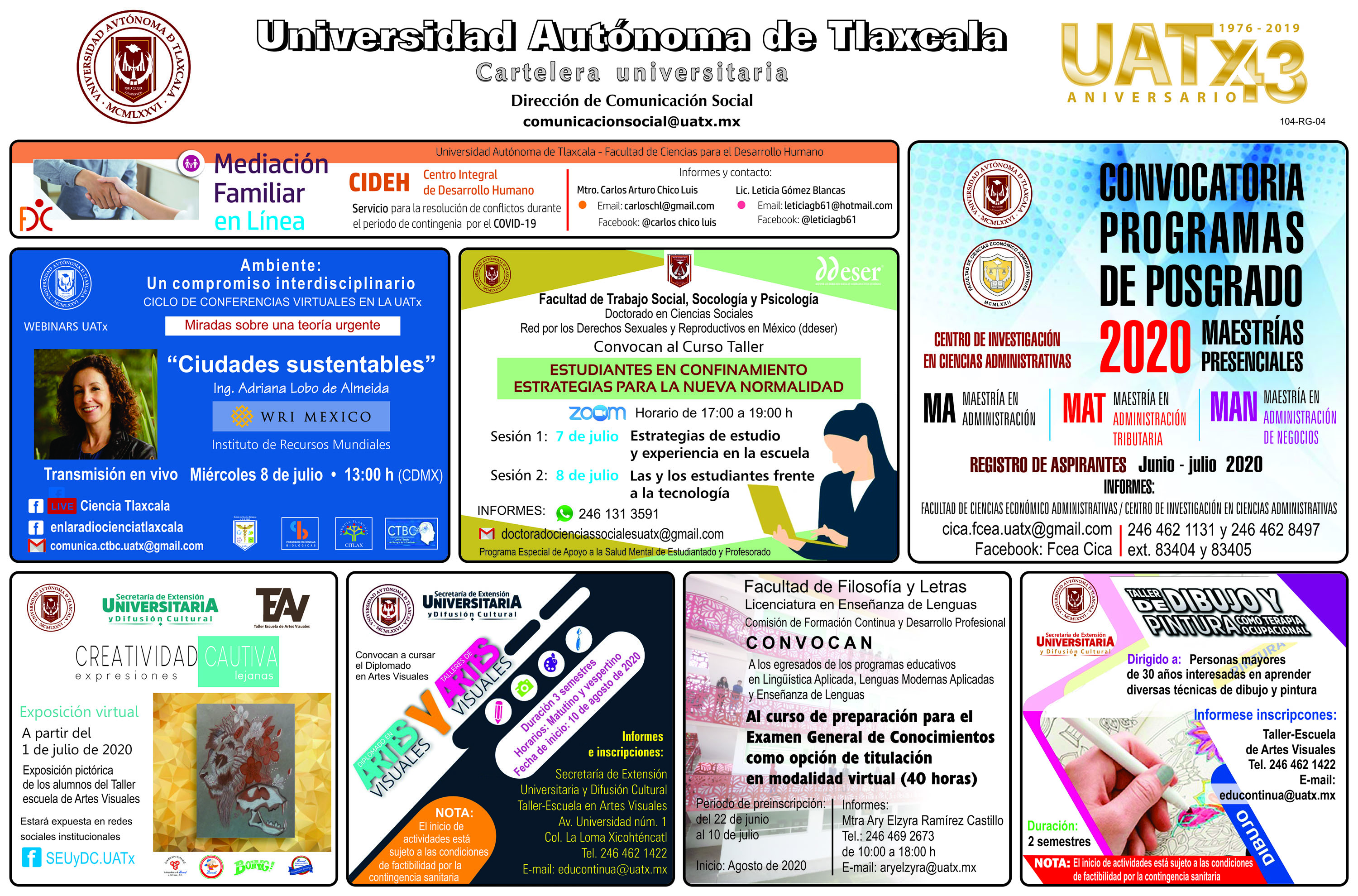 Conoce las actividades que desarrolla la UATx en distintos ámbitos con la Cartelera martes 7 de julio de 2020