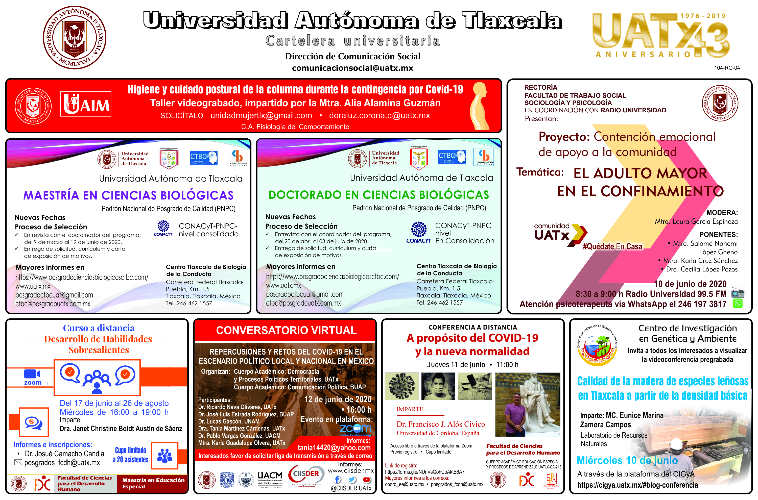 Conoce las actividades que desarrolla la UATx en distintos ámbitos con la Cartelera miércoles 10 de junio de 2020