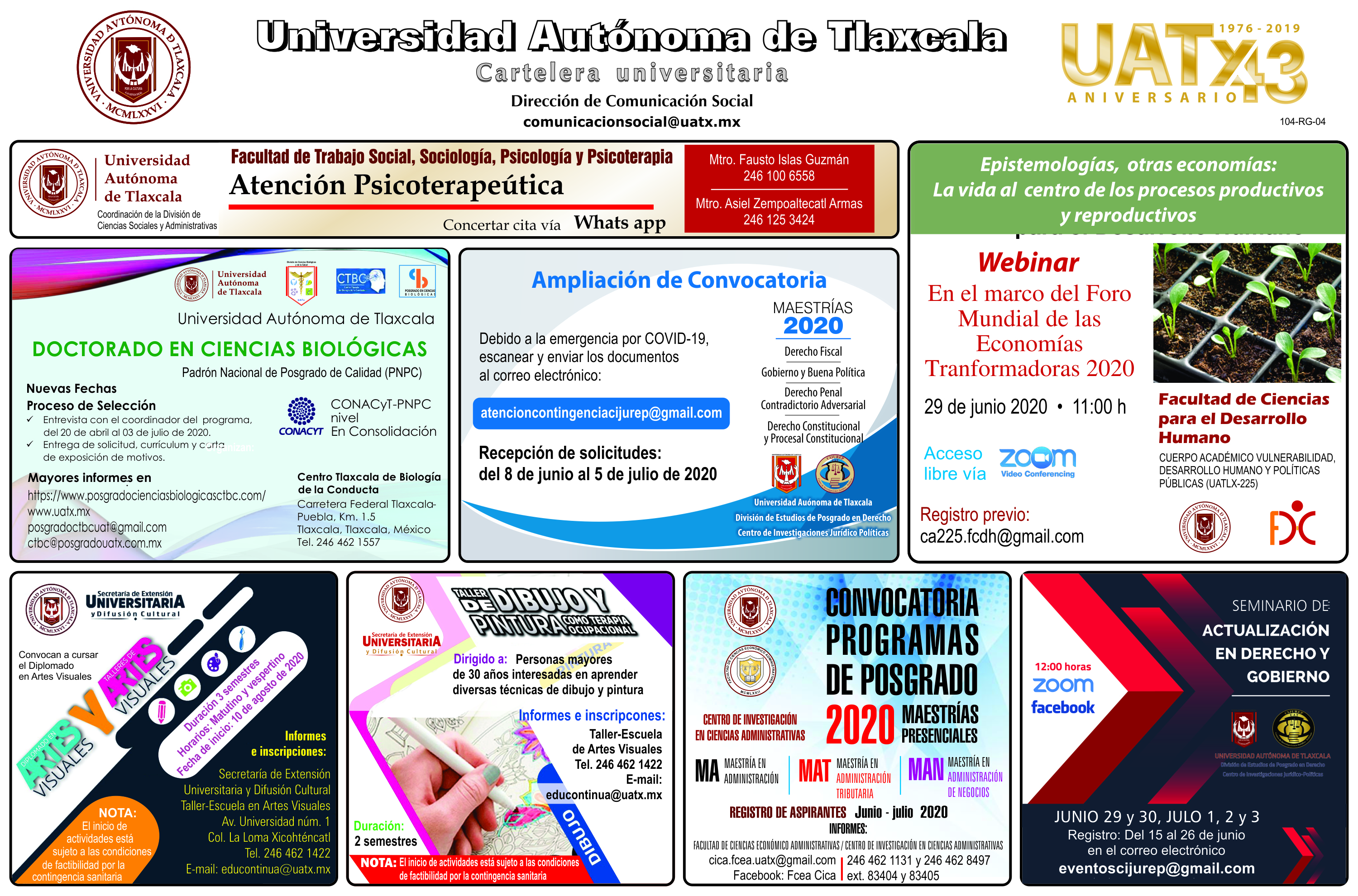 Conoce las actividades que desarrolla la UATx en distintos ámbitos con la Cartelera viernes 26 de junio de 2020