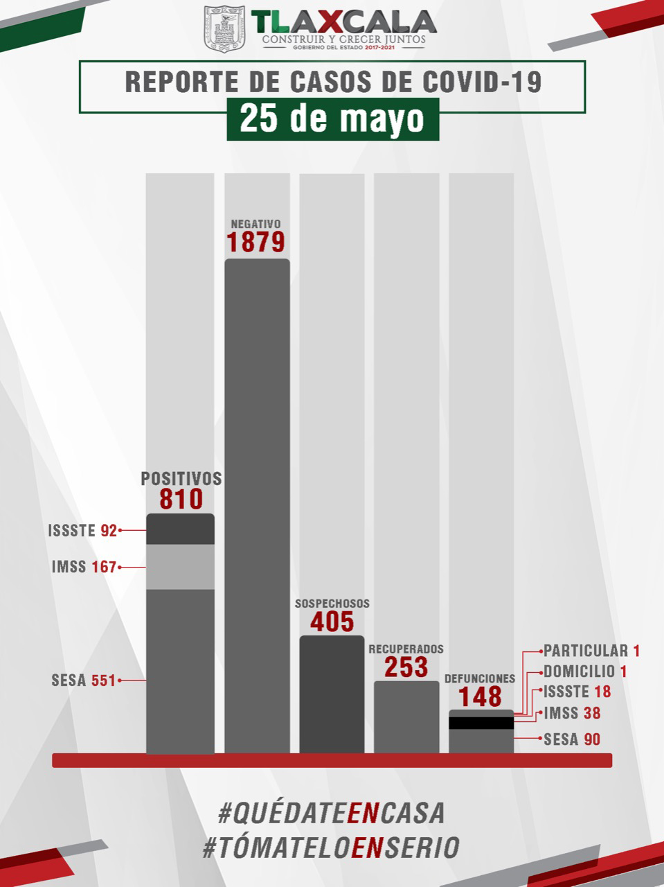 De esta manera, la entidad registra 810 casos positivos, 253 personas recuperadas de la enfermedad y 148 fallecimientos.