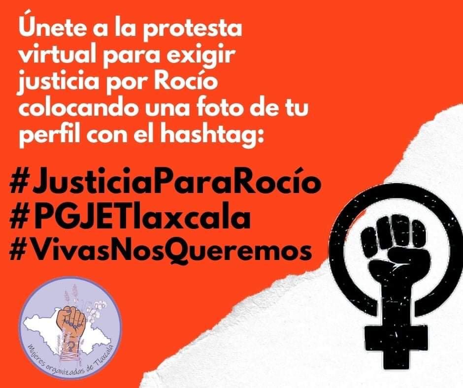 En las redes sociales el colectivo exigió que el gobierno de Tlaxcala garantice la seguridad y el acceso a la justicia para todas las mujeres y que se haya #JusticiaParaRocio, además de que se haga visible el caso.